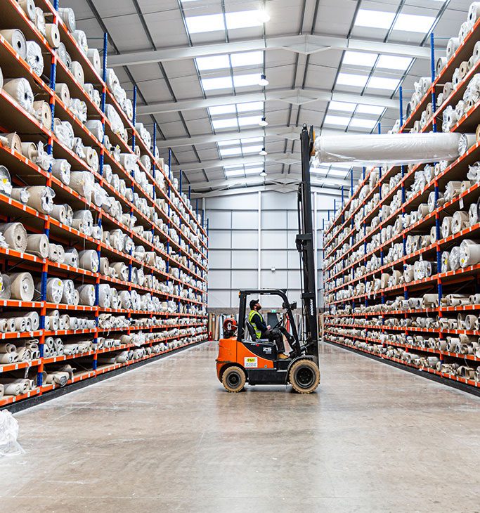 Using our highly organised warehouse as a base, we’re unrivalled in delivering flawless logistics for all size projects. Whether fast-track installations or rollouts over multiple locations, we have the capacity to provide you with just-in-time deliveries from our central location. Our warehouse is fully equipped for the safe and correct handling and storage of flooring, raised floors and wallcoverings.